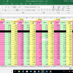 赤の列が最終倍率、緑の列が志願変更前の倍率、黄色の列12月段階での志望校調査です