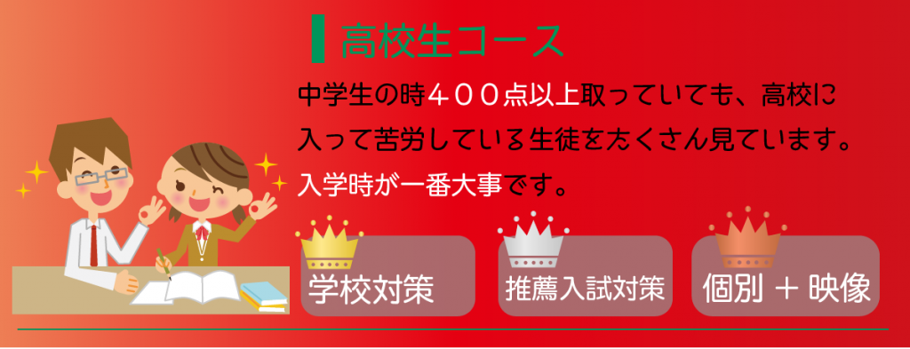 スクール・ワンは・・・ 実は高校生への対策が一番得意です。 ただ、限られた講師でしか指導できないので、ブログなどで宣伝はあまりしていません。 個別指導は高…